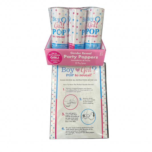 Pink Confetti Party Poppers for Gender Reveal, 12 Pieces